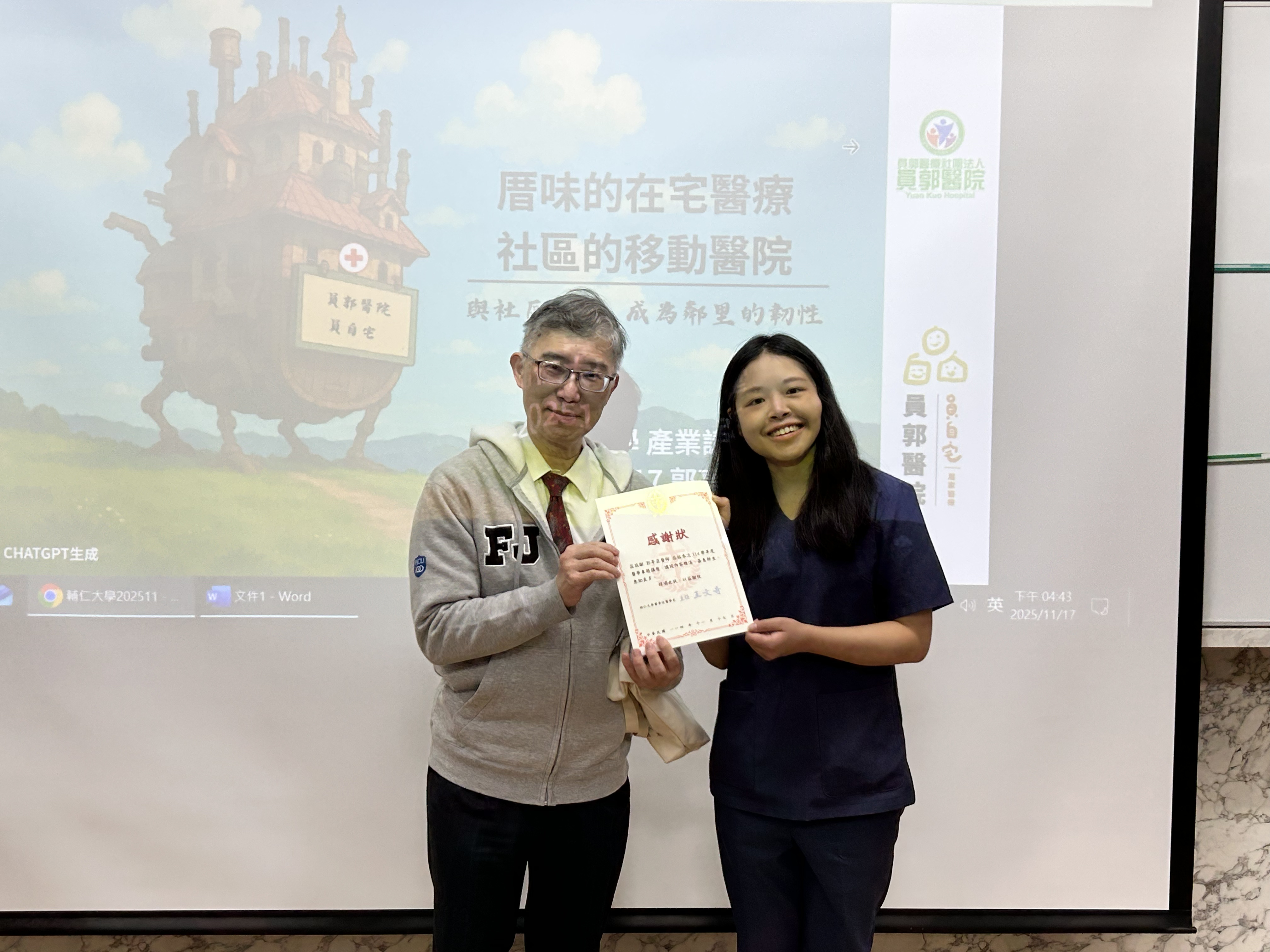 活動內容:邀請員郭醫院醫務部郭亭亞主任演講,主題為「厝味的在宅醫療」